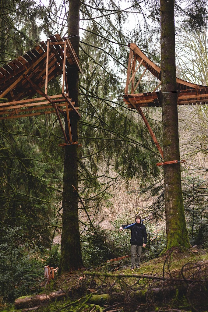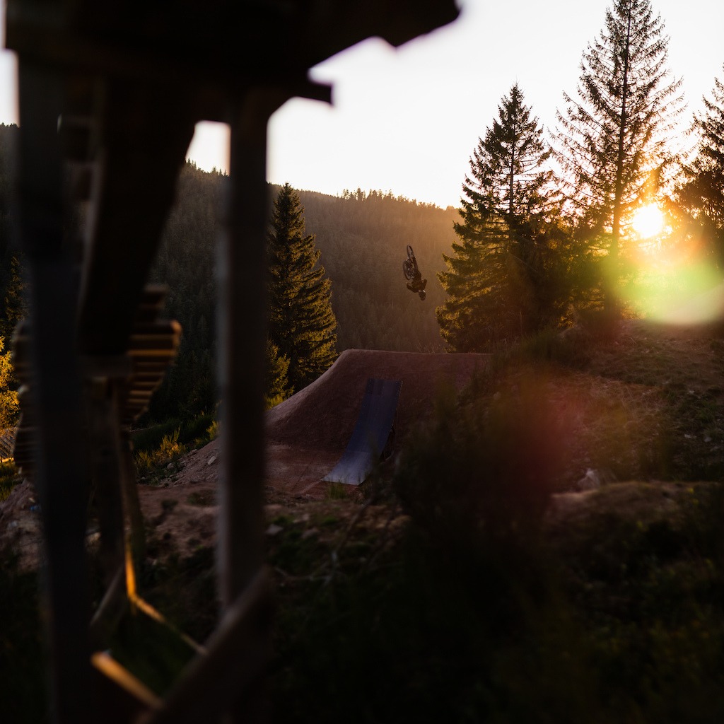 Он построил и проехал по крупным деревянным конструкциям, сложным тропам и смелым линиям, создавая настоящий адреналиновый взрыв. Сам процесс съемки стал настоящим вызовом: