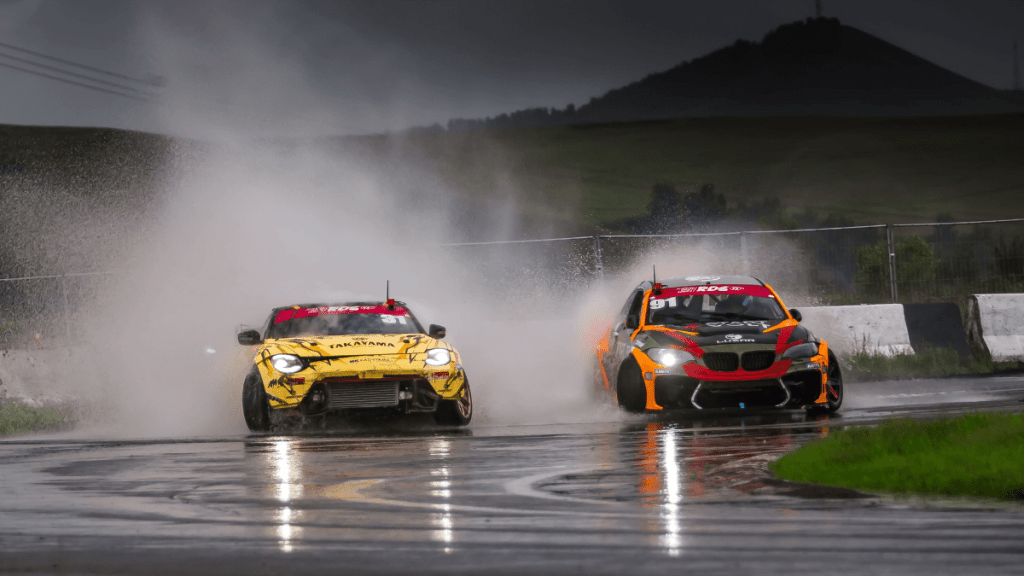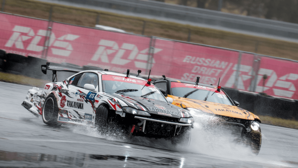 В решающем заезде Тимофея ждал его напарник по Takayama Forward Auto — самый титулованный пилот российского дрифта Георгий Чивчян. Казалось, фаворит очевиден: Гоча вырос на «Красном кольце» и знает трассу до сантиметра. Но дождь вмешался в сценарий.
