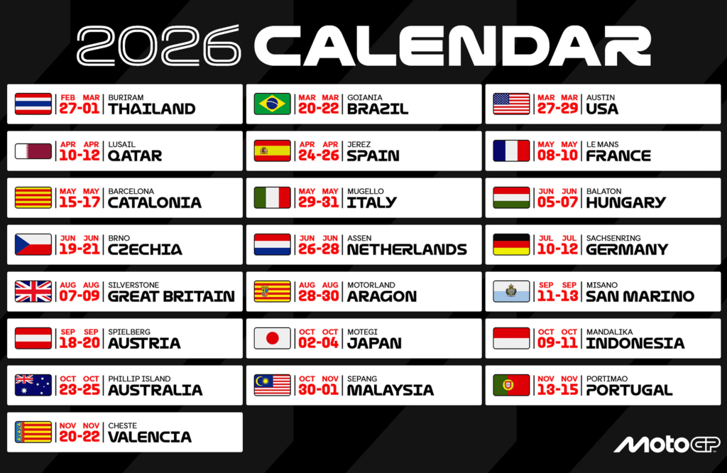 Читайте также: MotoGP 2026: 22 этапа, возвращение Бразилии и последний сезон 1000-кубовой эры